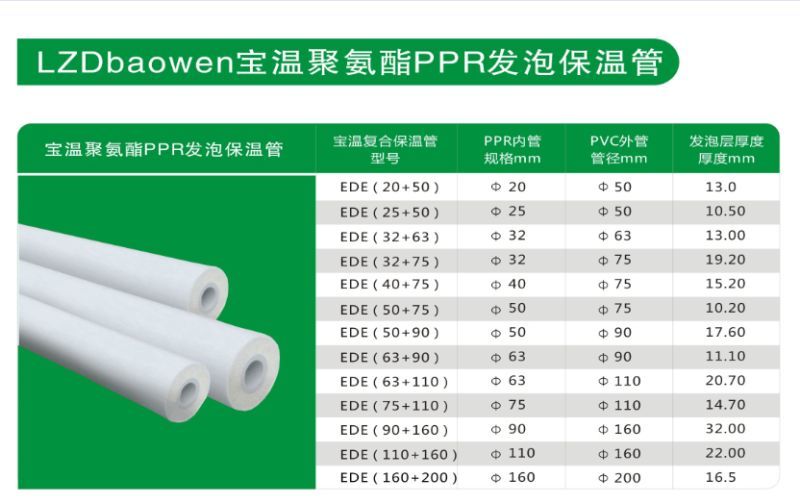 東莞市寶溫節(jié)能PRC復(fù)合保溫管內(nèi)管采用PPR管,外套管采用PVC管,中間為聚氨酯發(fā)泡保溫層,PPR管與保溫層及PVC護(hù)套管緊密結(jié)合成一個(gè)整體,減小了管道熱損失。